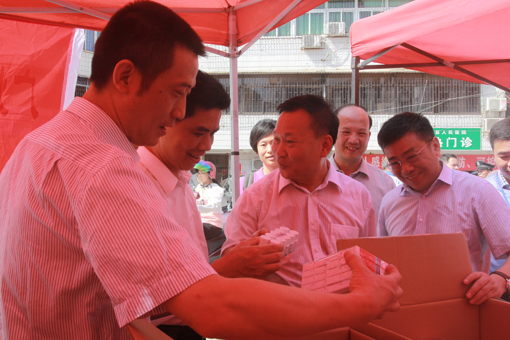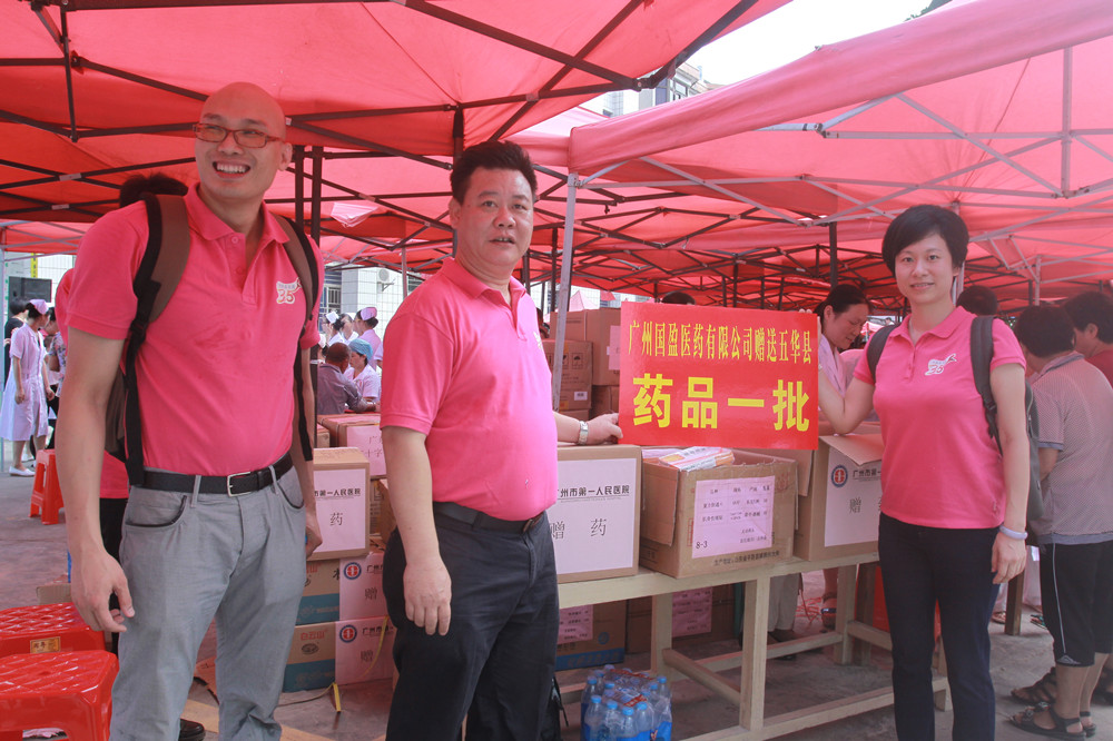 2014年6月27日,由廣東省衛(wèi)計委、廣東省醫(yī)師協會聯合主辦,廣州市第一人民醫(yī)院和廣東省第二人民醫(yī)院承辦,廣州醫(yī)藥有限公司(下稱:廣州醫(yī)藥)成員企業(yè)國盈醫(yī)藥協辦的2014年廣東省衛(wèi)計委“扶貧濟困日”送醫(yī)送藥、扶貧義診活動在梅州市五華縣成功舉辦。省衛(wèi)生計生委陳元勝主任親自率領省衛(wèi)計委、省紅十字會和省醫(yī)師協會有關負責人和醫(yī)療專家隊,深入五華縣人民醫(yī)院、轉水鎮(zhèn)衛(wèi)生院和潭下鎮(zhèn)光華小學,開展“扶貧濟困、雪中送炭”送醫(yī)送藥、義診下鄉(xiāng)活動。廣州醫(yī)藥黨委委員、副總裁、國盈醫(yī)藥總經理陳光焰,國盈醫(yī)藥黨總支部書記周敏華帶領 “向秀麗•雷鋒志愿服務支隊”參加了本次活動。