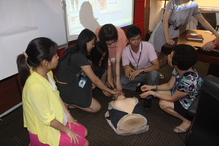 培訓邀請了廣州市科普健康咨詢服務中心李老師進行了一堂生動有趣的公共安全、健康知識講座。李老師詳細介紹了CPR(現(xiàn)場心肺復蘇術(shù))的緊急救護知識,傳授人工呼吸和胸外按壓知識,并根據(jù)當前容易形成職業(yè)病的實際情況,詳細介紹了辦公室常見的疾病如肩周炎、頸椎病、腰肌勞損的預防及改善的方法。另外,還介紹了如何應對暴力恐怖事件(逃脫、自救等知識)及公共場合突發(fā)事件應急處理方法。通過詳細的事例,簡單通俗、風趣幽默的語言,形象生動的比喻將一些專業(yè)化的知識灌輸給在座的每一位,讓每位員工都能聽懂并學以致用。