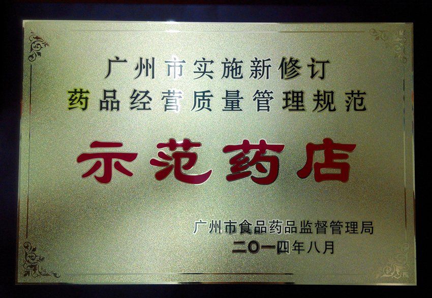 2014年8月22日,廣州醫(yī)藥有限公司成員企業(yè)健民連鎖北京路店、健華店、匯隆店、健樂店、曉港灣店、華景店等6所門店被廣州市食品藥品監(jiān)督管理局評為“廣州市實施新修訂藥品GSP示范藥店”的稱號。