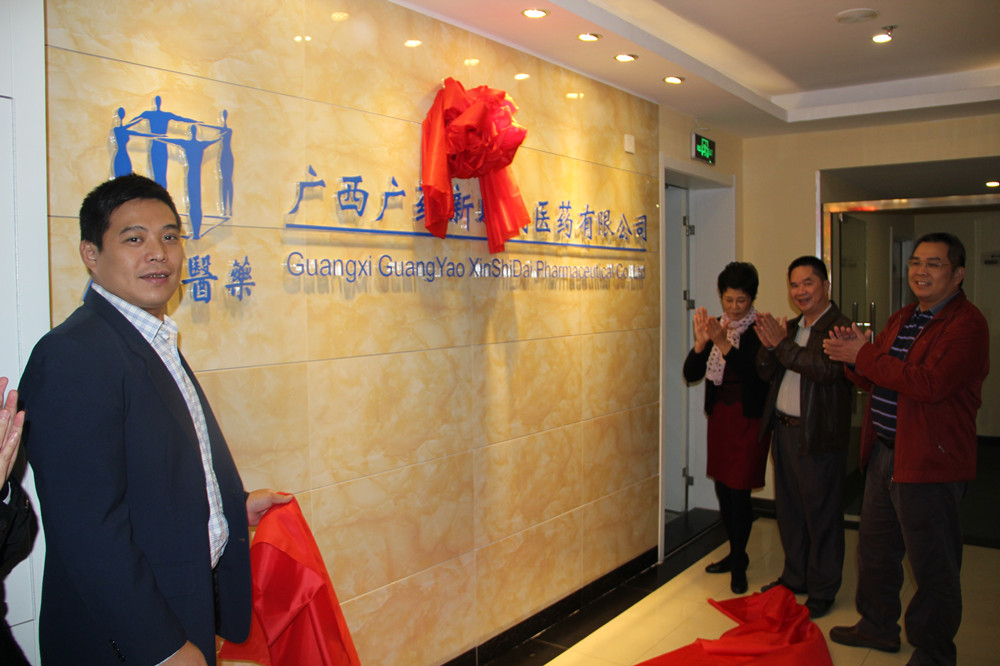 廣州醫(yī)藥總裁助理、廣西新時(shí)代董事長(zhǎng)方達(dá)鋒與經(jīng)營(yíng)班子共同為廣西新時(shí)代新址揭牌