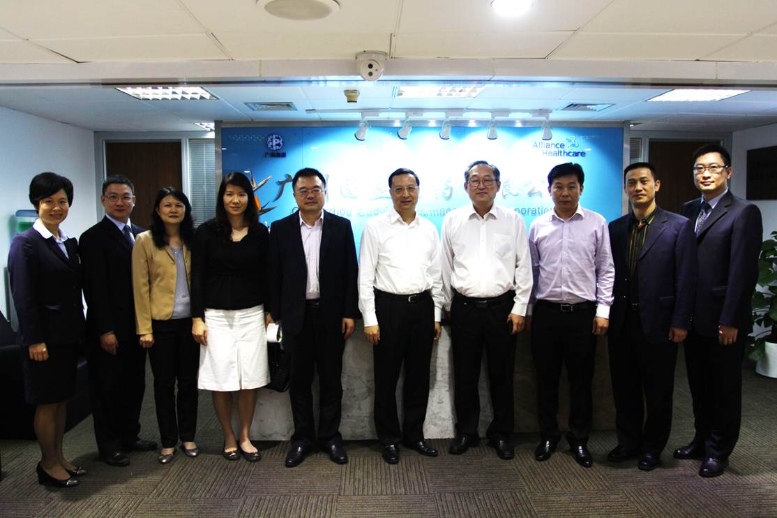 越秀區(qū)區(qū)長王煥清(左六)到國盈醫(yī)藥調(diào)研指導(dǎo)