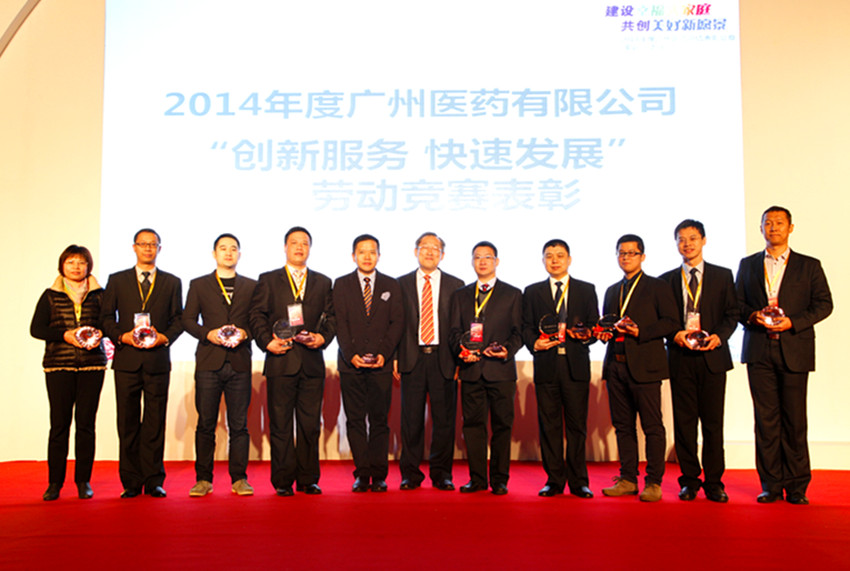 大會表彰了2014年勞動競賽獲獎單位。成員企業(yè)廣州國盈醫(yī)藥有限公司等10家企業(yè)榮獲“年度優(yōu)勝企業(yè)”獎;廣東省梅縣醫(yī)藥有限公司等5家“雙達標”單位被評為“年度杰出企業(yè)”;廣州醫(yī)藥本部等7家企業(yè)獲評“年度創(chuàng)新服務獎”。