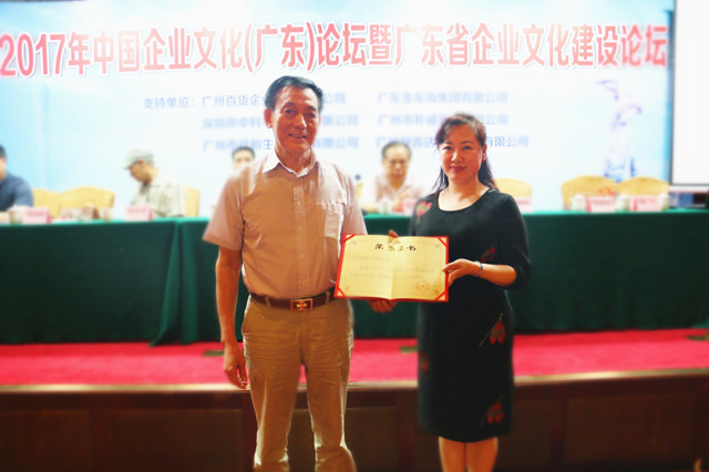 5月23日,2017年中國企業(yè)文化論壇暨廣東省企業(yè)文化建設(shè)論壇在廣州召開,廣州醫(yī)藥在會上榮獲中國企業(yè)文化建設(shè)先進單位和中國企業(yè)社會責任建設(shè)優(yōu)秀單位稱號,廣州醫(yī)藥黨委委員、工會主席、企業(yè)文化部總監(jiān)何毅參加會議。廣東省委宣傳部副部長、廣東省社會科學院黨組書記李子彪為獲獎單位頒獎。