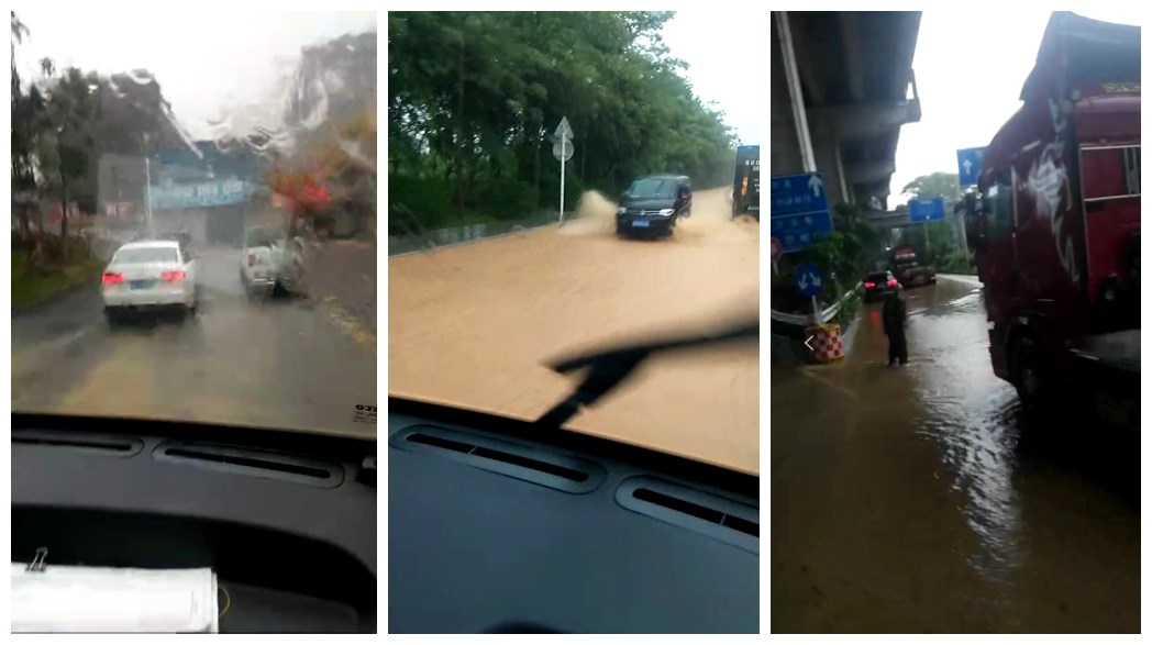深圳城區(qū)普遍積水嚴(yán)重,配送人員堅(jiān)持完成配送任務(wù)