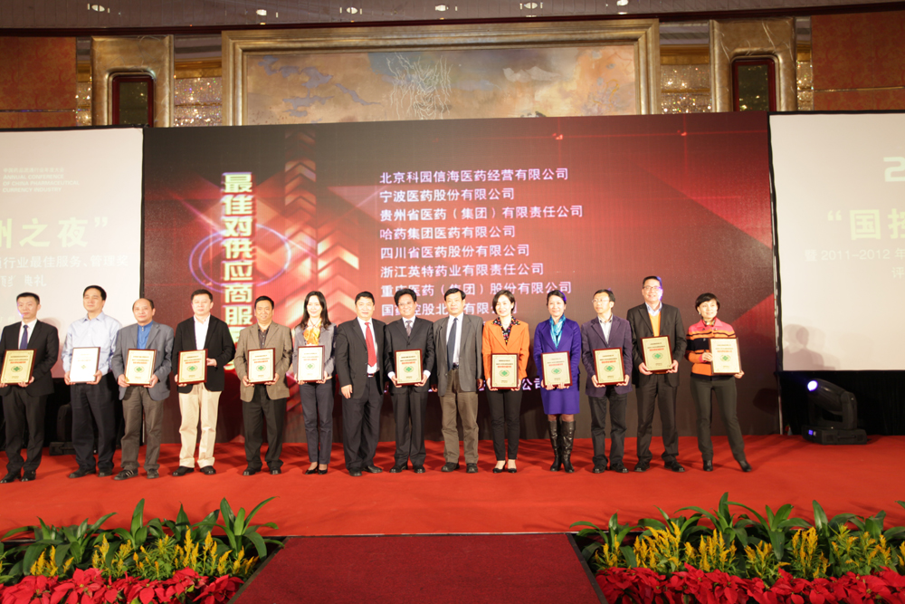 另外,楊瑞云副書記代表我司發(fā)布了2011年度社會責(zé)任報告,并接受了2012年企業(yè)信用評價AAA級授牌。在2011-2012年度中國藥品流通行業(yè)佳服務(wù)、管理獎評選結(jié)果表彰典禮中,我司共得到佳對供應(yīng)商服務(wù)、佳對醫(yī)療機構(gòu)服務(wù)、佳信息化實踐、佳物流管理創(chuàng)新、佳質(zhì)量管理創(chuàng)新等五個獎項。