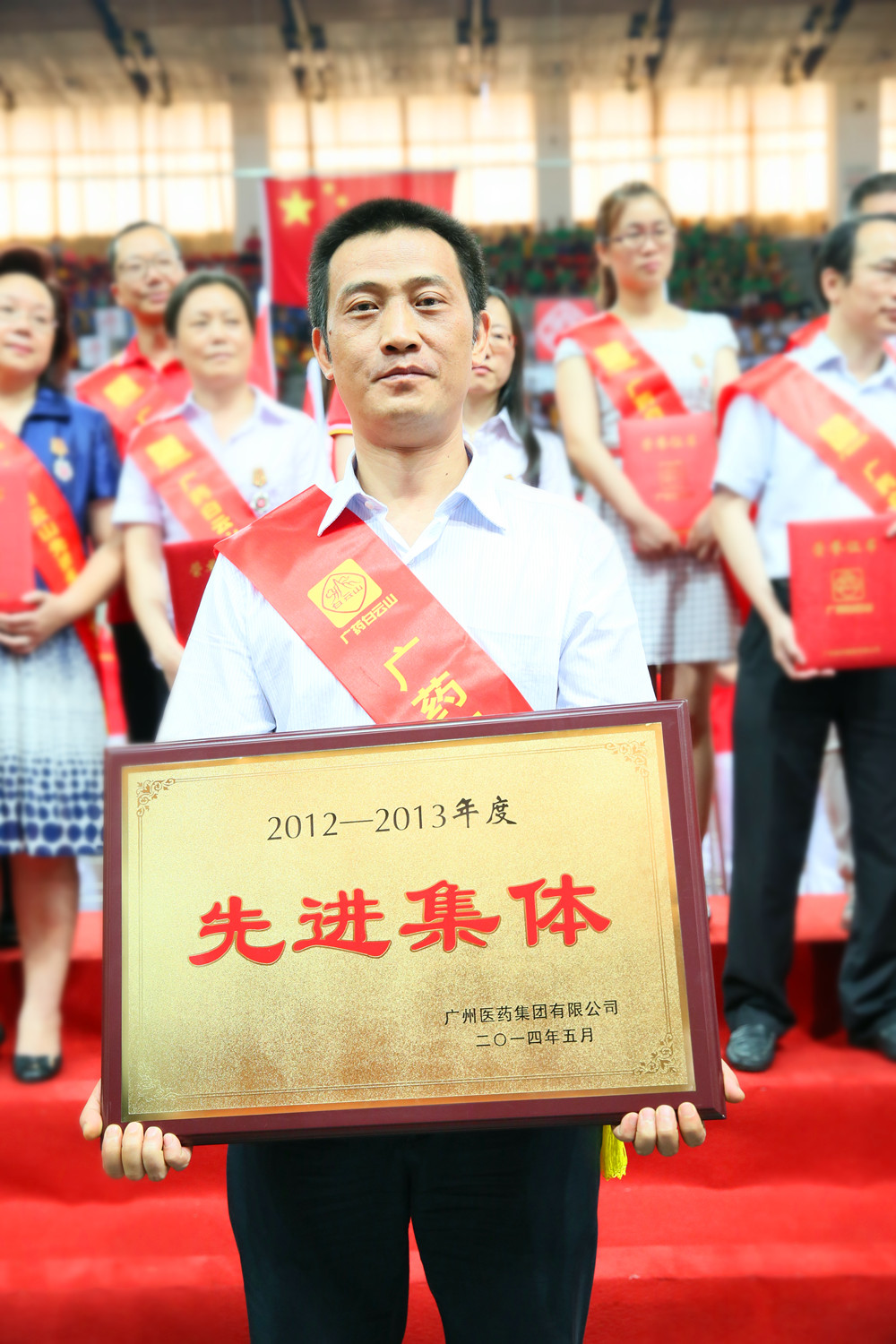 廣州醫(yī)藥獲2013年“廣藥白云山先進集體”光榮稱號;廣州醫(yī)藥副總裁、營銷總部總經(jīng)理陳光焰代表上臺領獎