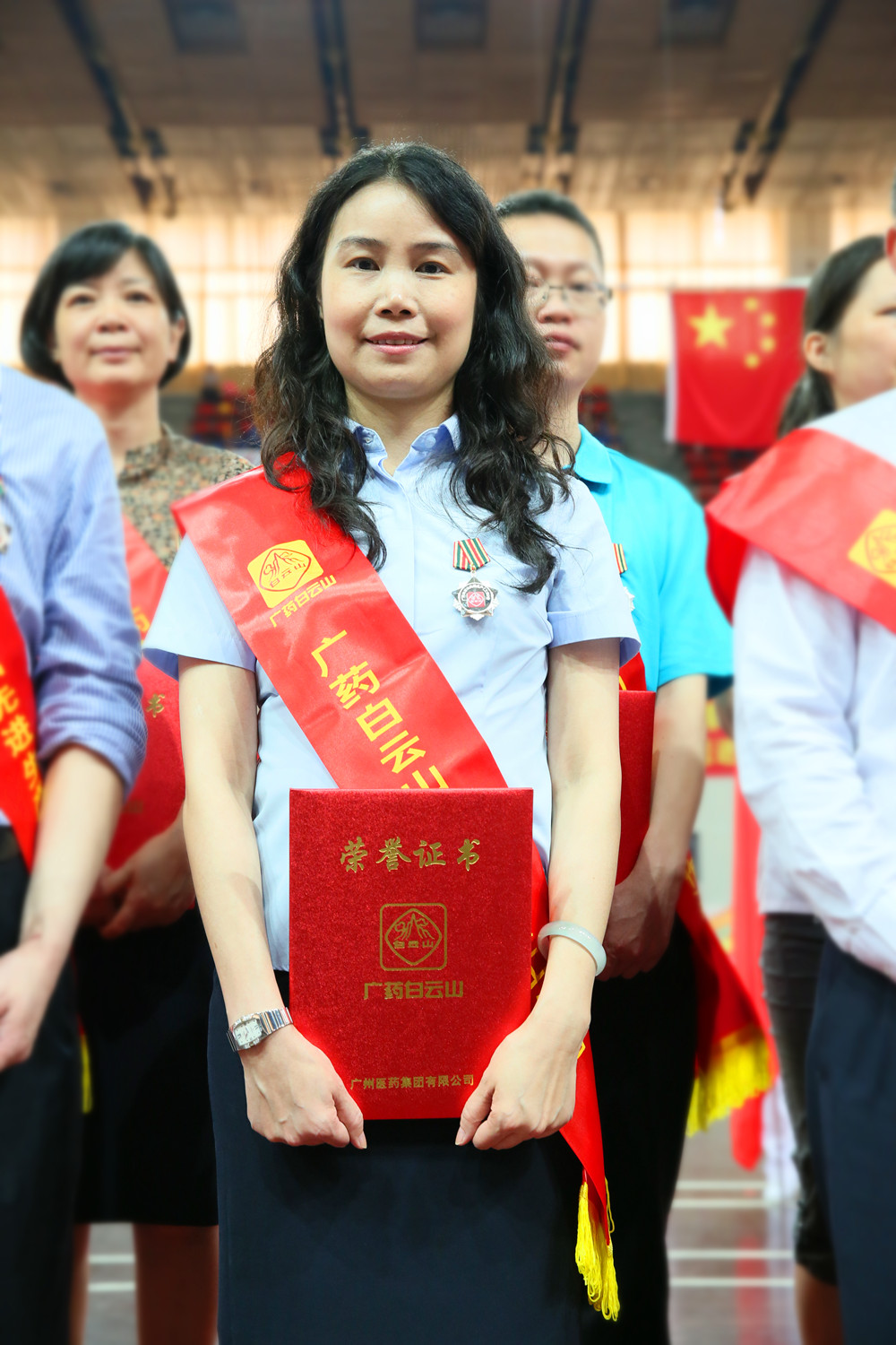廣州醫(yī)藥電子商務組獲“廣藥白云山工人先鋒號”光榮稱號;廣州醫(yī)藥供應商事務部總監(jiān)、電子商務部總監(jiān)黎鴻佳代表上臺領獎